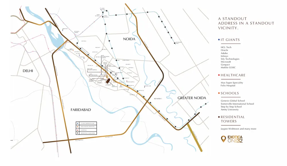 Exotica One32 is a premium commercial landmark by the Exotica Group, located in Sector 132, Noida, right on the Noida–Greater Noida Expressway. Developed as an IGBC Gold-certified green building, the project blends sustainability with modern commercial design. It offers a dynamic mix of office spaces, retail shops, food courts, and kiosks, catering to businesses, brands, and investors alike. Shops size start from approximately 469 sq. ft., and 5950 Sqft Corridor making the project suitable for startups as well as established enterprises. Thoughtfully planned infrastructure includes spacious lobbies, landscaped open areas, multi-level parking, and separate parking for visitors and owners, while advanced security features such as 24×7 CCTV surveillance, intercom systems, and biometric access ensure a safe and professional working environment.